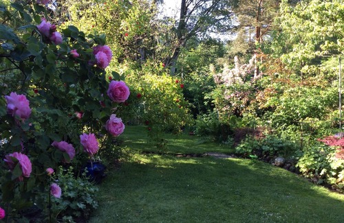 Earlier Alvern had its own school, a dwarf or single-class school, as it was back in the 60's still common. And the teacher lived conveniently equal under the same roof, along with a pig and a few chickens - the beasts in an extra stable, of course. Now Alvern no longer has this school because we live in it and feel fit as a fiddle. The pig is also no longer a covered swimming pool we did not so we had room for two smart apartments. The guesthouse is situated in the evening in the shade of large chestnut tree that is the heart of our plot and makes proud in the courtyard tall and wide. The guesthouse has two separate terraces show both the south-east. You can choose between shade or sun at all times.