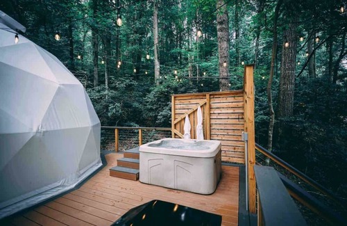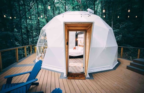 Welcome to Treetop Getaway! Escape to your own enchanting oasis, nestled high among the trees in this stunning dome retreat! Situated on a private 14 acres with a stream running through the middle of the property, this luxurious and cozy hideaway offers the perfect setting for relaxation, reconnection, and rest. Book now and treat yourself to an unforgettable experience filled with comfort, natural beauty, and cherished moments. We can't wait to host you!