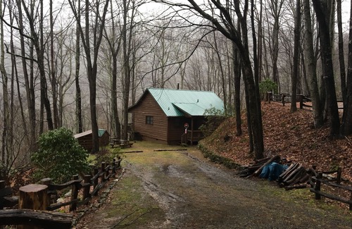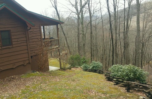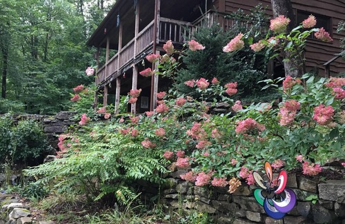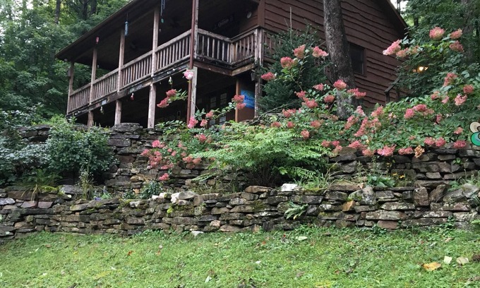 Why stay in a busy hotel when you can enjoy peace and privacy in beautiful Maggie Valley? Spend some time relaxing on the back deck and you may start to wonder if you're really in a treehouse. Enjoy peek-a-boo views of the mountains in summer and even more views in the winter. The terraced yard is perfect for picnics or yoga and the small wet weather stream is delightful. There is ample outdoor seating to nap or read a book. Throw some steaks on the gas grill and enjoy dinner outside around the picnic table. The cabin sleeps 4-6 people comfortably . The master bedroom has a comfy queen sized bed and an en-suite bathroom. The second bedroom has twin beds and easy access to the second full bathroom. The sleeper sofa is perfect for lounging and the kitchen has everything you need to cook a delicious meal. Need a little exercise? There are lovely walking trails right outside. The best shopping and dining in Maggie Valley is a 5 minute drive and Waynesville and Lake Junaluska are right around the corner. Cherokee is just 25 minutes away and downtown Asheville is an easy 40 minute drive . The owners live in the area and are always available by phone for questions or dining and activity recommendations. What are you waiting for? Treat yourself to a stay at Treetop and feel all of your stress just melt away.