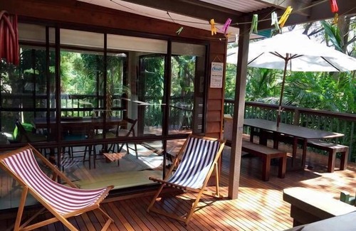 "We had a great time, much too short a stay. The house is set up beautifully, just like a well-equipped treehouse. Love the tropical feel, the birds sitting on my arm, the surrounding beaches, closeness to the Bay and Mogo Zoo, Pebbly Beach - too much to list. Paradise placed right in the middle! Can't wait to come back!" 25/6/09