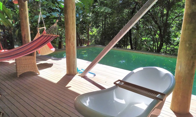 Welcome to our treetop pole home! Stay with us to experience a tropical and private home-away-from-home close to both jungle and beach.