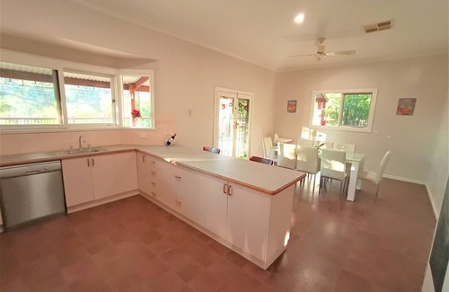 Escape to Albury at Treetops Escape, a stunning, spacious 4 bed, 2 bath family home nestled in the popular Monument Hill area. Only a short 2 min drive to Albury CBD. With nature on your doorstep explore the fantastic bushwalking tracks, hop on your mountain bike for some adrenalin fun or relax & unwind whilst looking out across gorgeous views across town, listening to the variety of parrots. Or explore the beautiful, established gardens. A great escape from the hustle & bustle of everyday life.