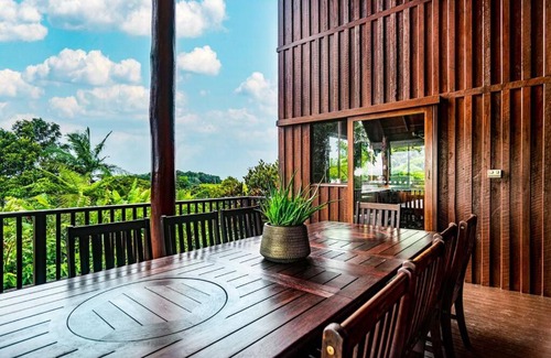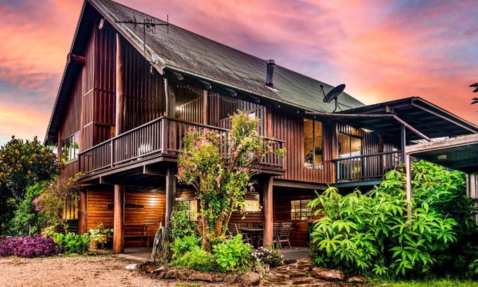 20 miles from Curtain Fig National Park in Jaggan, Treetops Sanctuary - Luxury Treehouse pole home features accommodations with access to spa facilities. There's an outdoor fireplace and guests can use free Wifi and free private parking. Providing access to a patio with garden views, the vacation home consists of 6 bedrooms. Featuring a balcony with mountain views, this vacation home also comes with a flat-screen TV, a well-equipped kitchen with an oven, a microwave, and a toaster, as well as 2 bathrooms with a bath and a hair dryer. There's also a seating area and a fireplace. Guests at the vacation home can enjoy cycling nearby, or make the most of the garden. The nearest airport is Cairns Airport, 57 miles from Treetops Sanctuary - Luxury Treehouse pole home.