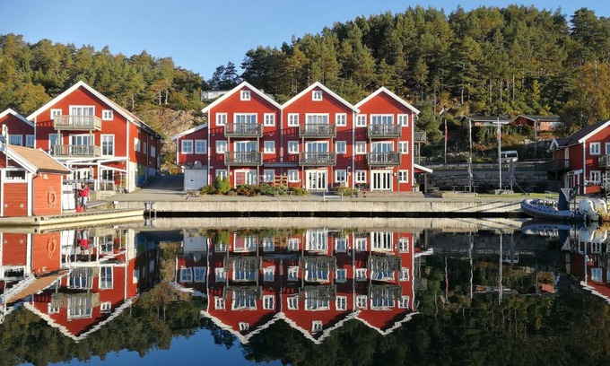 Best-rates for the Tregde Ferie starts from $177 per night with includes View, Accessibility, Fireplace/Heating, Guest Services, Wellness Facilities, Restaurant, Child Friendly, Laundry, Balcony/Terrace, EV Charge Station, Business Services, Barbecue/Outdoor Cooking, Internet, Parking, Pet Friendly, Pool, Ocean View, Oceanfront, Transportation/Shuttle, Security/Safety, Sports/Activities With all other amenities. Float Homes offers a wide range of floating homes, houseboats, and water chalets, ensuring each traveler finds their ideal water escape, whether planning a water getaway, a family vacation, or a pet-friendly retreat with the whole group.