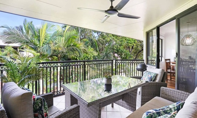 Indulge in a luxurious escape at Trinity Links Resort, a tropical haven just minutes from Cairns CBD. Nestled among lush gardens with breathtaking mountain views, this stunning apartment offers the perfect blend of relaxation and convenience.