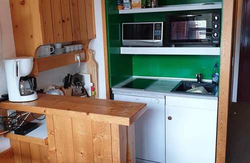 Very comfortable apartment in the popular resort of Les Arc 1800, part of the immense Paradiski area. Winter: ski-in ski-out, ideally situated just above the high capacity Transarc gondola ski lift. Ski back to the apartment through the pine trees.