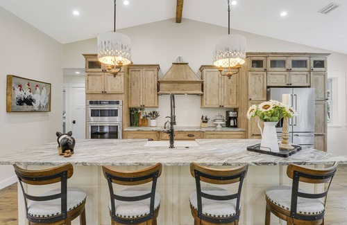 Relax by the sparkling outdoor pool, soak up the sunshine on the pool deck. relax under the shady outdoor area, or gather around the fire table for cozy evenings. Inside, you'll find a fully stocked kitchen with all the essentials, making it easy to whip up delicious meals. Enjoy your culinary creations at the dining table or step outside and fire up the grill for an alfresco feast.