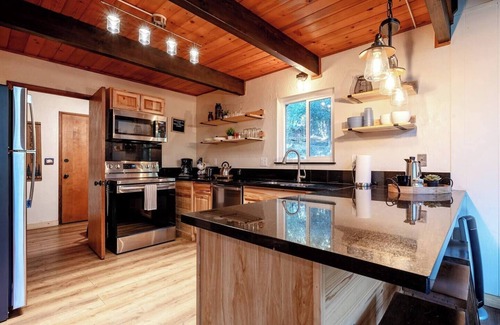 Surrounded by towering pine trees in Sequoia National Forest, the Trout River Cabin offers a serene escape with everything you need for both adventure and relaxation. Situated on a private, wooded 1-acre lot, the cabin backs up to a beautiful trout-producing river with hiking trails and hidden swimming holes nearby. Remodeled in 2022, the cabin includes two cozy living rooms, modern appliances, premium linens, and thoughtful touches throughout.The perfect setting for a secluded mountain getaway!