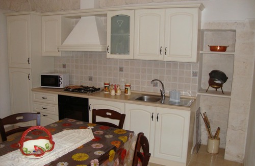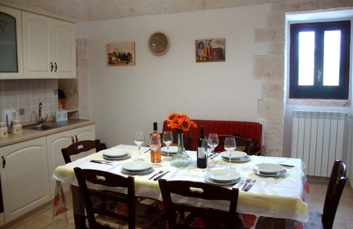 Trullo Cool spell in the summer months, thanks to the thick walls that isolate from the heat, and heated (when required), by radiators in all the rooms, it is composed of three trullo bedroom (In a room the light that enters from the window / porthole located in the upper part of the trullo instead of the pinnacle, creates a charming atmosphere and offers the guest a wonderful feeling of waking up every morning in a fairy-tale place), from a barrel-vaulted entrance / living room, from a kitchen-hall dining room with a barrel vault, and a large bathroom.