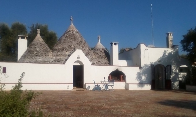 The property sits in an olive grove of over100 trees giving guests virtually total privacy. The neighbouring trulli are 100 metres away on both sides hidden by trees and shrubs.