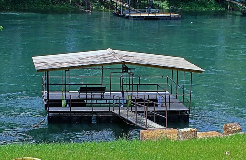 The backyard overlooks the river, has a charcoal grill and pathway leading to the private floating dock for fishing. The Little Red River is internationally known as the home of the world record brown trout! Additional seating on the dock for relaxing.