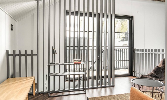 Situated in Stöten in the green fairy-tale nature of Dalarna and in relatively short distance to the nature reserve Norra Transtrandsfjällen, this house with modern mountain atmosphere, open living space, large windows and an exceptionally high ceiling promises an adventurous nature vacation for the whole family! At the long dining table you can plan your mountain hike and canoe trip. Especially the charades game makes the evening even more cozy. If the children do not want to join in the kitchen, you can draw at the table. On the covered terrace everyone can play Uno.