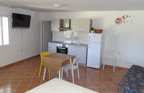 One flat has a double bed plus a sofa that can become a bed for two, a kitchen and a bathroom. The other one also has a sofa-bed, a kitchen, a bathroom and stairs that lead to an upper part with two mattresses. Each flat is air-conditioned and with a flat TV. There is a washing machine, a dishwasher and, of course, free wi-fi.