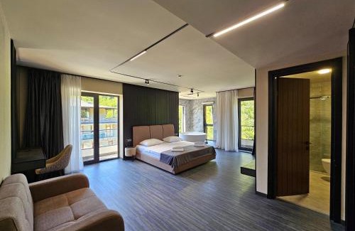 Located in Tsqaltubo, a 12-minute walk from Prometheus Cave, Tskaltubo Epic Hotel & Spa provides accommodations with a seasonal outdoor swimming pool, free private parking, a garden and a terrace. Featuring a restaurant, the 4-star hotel has air-conditioned rooms with free WiFi, each with a private bathroom. The hotel has a sauna and a 24-hour front desk. Guest rooms in the hotel are equipped with a flat-screen TV and a hairdryer. Tskaltubo Epic Hotel & Spa offers a buffet or continental breakfast. The accommodation offers a hot tub. White Bridge is 12 miles from Tskaltubo Epic Hotel & Spa, while Colchis Fountain is 12 miles from the property. Kutaisi International Airport is 16 miles away, and the property offers a paid airport shuttle service.