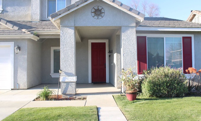 Looking for a getaway with your whole family or group of friends? Come and relax in this beautiful house located in the quiet and safe neighborhood of Paseo Del Lago in Tulare, CA. The house is a 5bdrm 2.5 bthrm that can fit up to 10 guests and includes kitchen, living room, free washer/dryer, and WIFI. The garage is rented to other guest. The convenient location is nearby the Tulare Outlet (outlet mall), 5 miles away from World Ag Expo, 40 miles away from Sequoia, and 8 miles away from Kaweah Health Clinic and Downtown Visalia.
