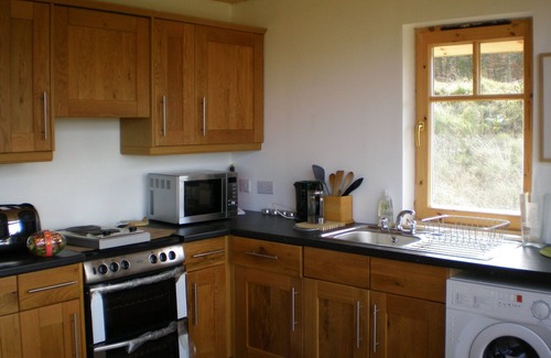 The fully fitted oak kitchen has an electric cooker/oven, toaster, kettle, microwave, refrigerator and washing machine. All kitchen utensils are provided.