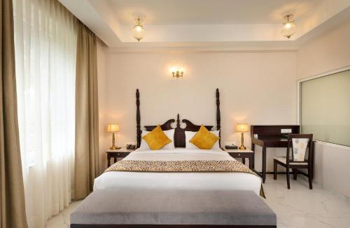 Located in Kumbhalgarh, a 13-minute walk from Kumbalgarh Fort, Turban Bhawani Heritage, Kumbhalgarh provides accommodations with an outdoor swimming pool, free private parking, a garden and a terrace. The property has a 24-hour front desk, airport transportation, room service and free WiFi throughout the property. The hotel will provide guests with air-conditioned rooms offering a desk, an electric tea pot, a safety deposit box, a flat-screen TV and a private bathroom with a shower. All guest rooms include a closet. Guests at Turban Bhawani Heritage, Kumbhalgarh can enjoy a buffet breakfast. At the accommodation you'll find a restaurant serving Indian cuisine. Vegetarian, halal and vegan options can also be requested. You can play table tennis at this 4-star hotel, and car rental is available. Maharana Pratap Airport is 70 miles away.