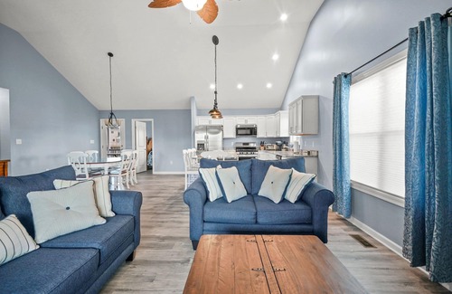 Treat yourself to an unforgettable stay at Turtle Bay! This brand new construction will leave you in awe. The coastal décor is everything perfect for a beautiful vacation. Immerse yourself in the plentiful views, sit and sip your morning coffee or evening beverage from the screened porch or cozy up by the fire in the living room. Cooking will be a breeze in the tastefully laid out kitchen featuring stainless steel appliances and granite countertops. Enjoy the large open floor plan and the inviting owners suite with a queen sized bed and a walk in shower. The other 3 bedrooms also feature queen sized beds, one with a smart tv as well as two full bathrooms.