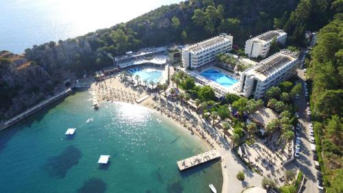 Located in Turunç, a few steps from Turunç Plajı, Turunc Resort Hotel provides accommodations with a seasonal outdoor swimming pool, free private parking, a fitness center and a garden. Providing a restaurant, the property also features a private beach area, as well as a sauna and a hot tub. The property has a kids' club, a shared lounge and currency exchange for guests. At the hotel all rooms have air conditioning, a closet, a balcony with a mountain view, a private bathroom and a flat-screen TV. All guest rooms feature a safety deposit box. A buffet, vegetarian or vegan breakfast is available at the property. Turunc Resort Hotel offers a hammam. You can play table tennis and darts at this 5-star hotel, and bike rental and car rental are available. Speaking German, English, Polish and Russian at the reception, staff are ready to help around the clock. Marmaris Yacht Marina is 19 miles from the accommodation, while Aqua Dream Water Park is 11 miles away.