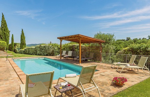PODERE BAIOCCO is a typical Tuscan, historic farm house from 1700, recently converted to a prestigious holiday estate without losing its unique character and charm. Surrounded by 20'000m2 of well kept gardens, for your private use only, it offers all the peace and tranquility that you look for during your holidays. If you are looking for a place to truly relax - here you've found it.