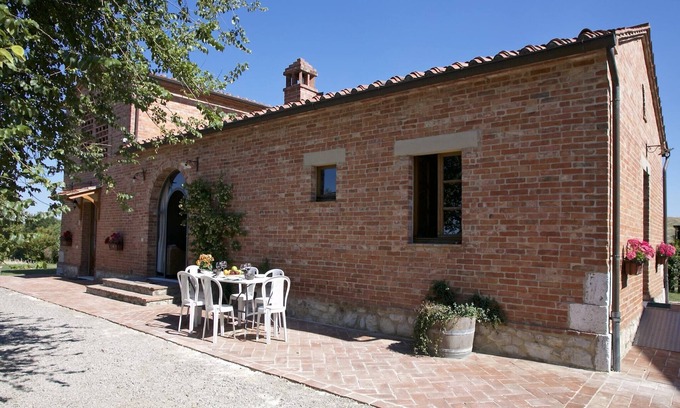 Escape to this charming farmhouse nestled in the heart of the Crete Senesi, just a short drive from Siena. Ideal for families, this countryside retreat is located within an agriturismo surrounded by rolling Tuscan hills, offering a peaceful setting with panoramic views.