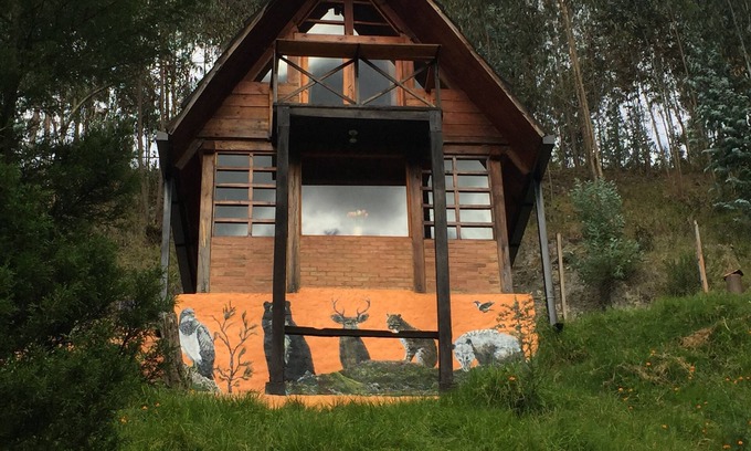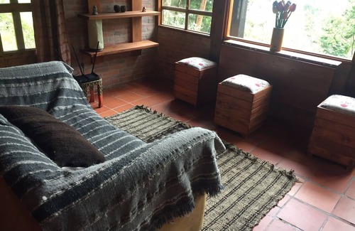 Beautiful cabin in the mountains of Tabio. This is the perfect escape to relax and finish that book, surrounded by nature. 5 minutes from the town by car or bus, and only 1 hour by car from Bogotá. The cabin has wonderful views of La Peña de Juaica, with a cozy lounge, double bedroom with balcony and spectacular bathroom with a glass ceiling, so you can shower surrounded by trees!