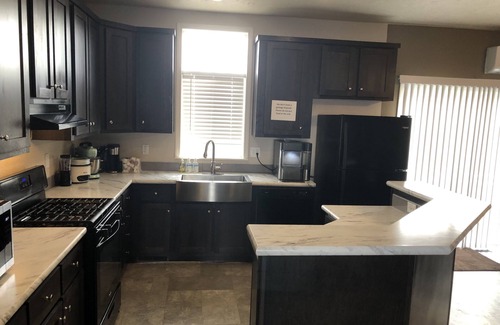 Lake house with toys & life jackets. Hang our hammocks with trees or camp on the beach bring a boat and waterski. Quasi Farm lakefront house. Our guest stay to enjoy our private beach, use our 4 kayaks & red paddle boat from Memorial Dayto Labor Day. You can bring your extra tent and set it up for free on the beach area invite additional guest. 4 RokuTV's, games, large kitchen, Coffee, hot chocolate, and s’mores, collect chicken eggs, life jackets and cooler provided with free shared use of the lake toys. Our guest can have events for extra. We have 20 acres of private land that goes along the lakeshore and into the lake in areas. Eagles, deer. A few miles from Hwy91 that-hooks back up withI-15. In addition to the 3 bedroom house, we additionally two bnb a 32’ trailer with 1 queen bedroom that can be booked, and our tents and RV spots. Chickens run free.. Small country store with deli near & we love our repeat visitors. Family reunions and weddings at an extra event charge. Catering available. Experienced super host. Child care referrals. Looking at our glamping site. We help create memories. We allow parties and events. 2 large leather sectionals with 4 reclines provide extra sleeping. Air mattresses available. Fresh air, tiki torche, fire pits and grill. You can pack this house. Picnic beache. Rattan outside seating. Events, Parties, pets, area to keep horses. The house has a RV full hook up for an extra$50 per night. We can host 200 people for events on our beach. The large event fee is $5 per car and $2 person per day call for details. Large events require booking the house and at least1 trailer at the beach. Girls/boys camps and teams can tent at the house or on the beach. While there are only 6 beds in the house and officiallyit sleeps 12. You can pack in more people. Usually 20 and under at no additional charge. Just message us.