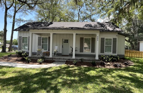 Charming cottage (brand new construction 2023) sits under large oaks on quiet street. Located 7 blocks from waterfront and the ferry that takes you to the amazing Cumberland Island. Bike ride or walk to the downtown restaurants. Or just getaway for quiet time and sit on the shaded porch listening to the birds. Cottage completely stocked with all your needs.
