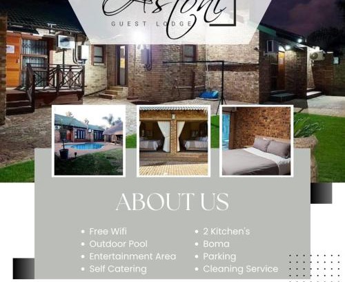 Twins Guest House Astoni in Vanderbijlpark provides accommodations with a garden and barbecue facilities. All guests of the property enjoy access to an outdoor fireplace and a seasonal outdoor pool. The guest house offers rooms with air conditioning, free private parking, and free Wifi. At the guest house, each unit comes with a desk, a flat-screen TV, a private bathroom, bed linen, and towels. Each room comes with a kettle, while certain rooms will provide you with a fully equipped kitchen with a dishwasher, an oven, and a stovetop. In some units there's a dressing room for guests to change in. Guests at the guest house can enjoy an American breakfast, and breakfast in the room is also available. For visitors looking to embark on day trips to nearby landmarks, Twins Guest House Astoni features a selection of packed lunches. Leeukop Golf Course is 11 miles from the accommodation, while Meyerton Golf Club is 20 miles from the property. O.R. Tambo International Airport is 56 miles away, and the property offers a paid airport shuttle service.