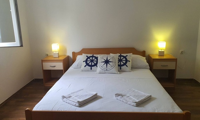Apartment can accommodate 6 guests. Beds are situated in 2 sleeping rooms, but also in the dining room, within 57m2. The apartment offers the sea view. Food can be prepared using barbecue which is shared with other guests too. Reserved accommodation unit has a shared terrace.