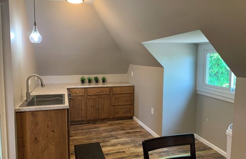 "The Loft" is a 3 minute drive or 10 minute walk to downtown Historic Hannibal including unique shopping & eateries, and access to the Mississippi River. Walk, hike, or bike along Bear Creek to Sodalis Park Trailhead . Brand new unit with security door access & stairwell leading into apartment. Fully equipped kitchen including stove, refrigerator, dishwasher, cookware & dishware. Two bedrooms with double bed configuration (one in each room), including bedding. Living room with fold down futon (single) and TV. Full bathroom with walk in shower and washer & dryer. Complete seperation from other (apartment) units.