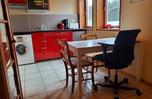 45m2 separate apartment: kitchen, bedroom / living room at the ground-garden of a wooden house Surrounded by a garden and orchard.