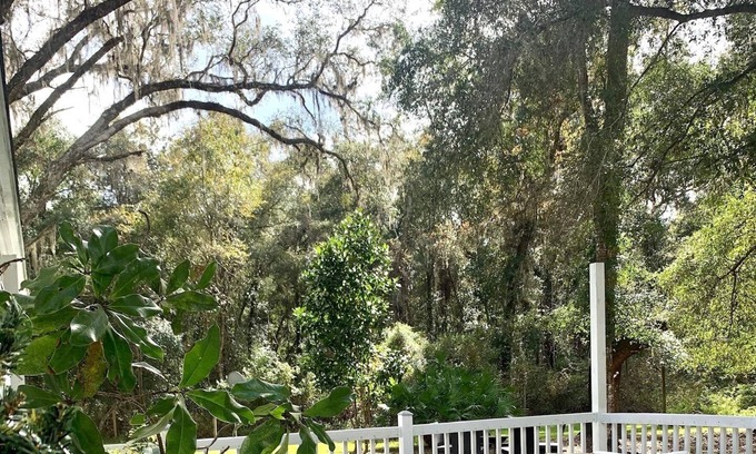 Sit back and enjoy the view of oak and magnolia trees at the deck while you have a drink or BBQ.