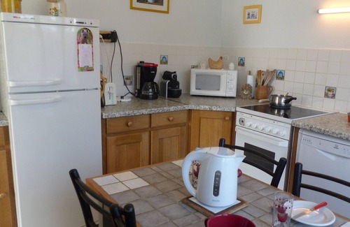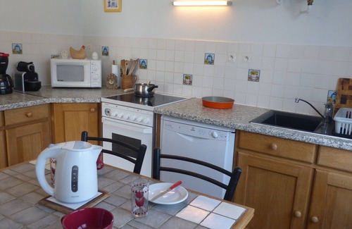 Fitted and equipped kitchen with 4 ceramic hobs, electric oven, fridge/freezer, microwave, dishwasher.