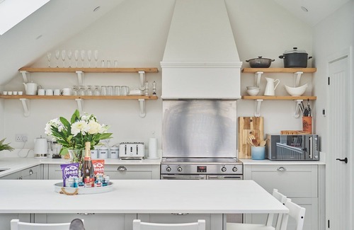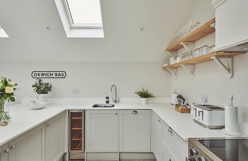 This contemporary cottage has a modern and stylish decor with a neutral colour palette and accent colours that exude a coastal feel. There are high quality fixtures and furnishings, plus underfloor heating throughout, while individual touches include art by local Welsh artists. There's WiFi too.