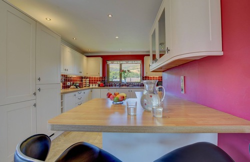 Kitchen and utilities – fully equipped kitchen with electric range double oven, dishwasher, washing machine, fridge freezer, microwave. Iron and ironing board provided.