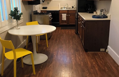 You'll find wireless internet, clean towels and sheets, basic kitchen and bathroom amenities, coffee maker, a flat screen TV with Apple TV, and keyless entry.
