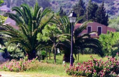 This beautiful apartment is part of a small holiday complex situated in the southeastern part of the island of Sicily. The pastel-colored complex is located directly on the Ionian Sea and was built in typical old Sicilian style. You can access the private shingle beach from the beautiful gardens of the complex. The gardens are of varied design and have a variety of plants and trees, including exotic palms. In the middle of the garden, there is an amphitheater, built with stones from the area. The complex, with its 15,000 m² grounds, is an oasis of tranquility. On the grounds, there is also a volleyball court.
