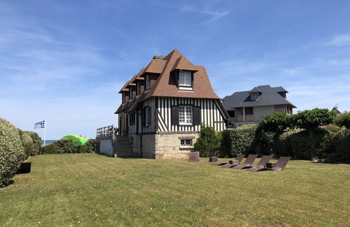 Beautiful Norman house (250m²) on the beach with magnificent views of the sea from all the rooms, a 1500 m² garden, only 5 minutes away from Deauville ! High speed internet.