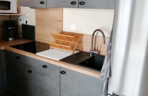 A sofa bed and air conditioning are featured at this 2-bedroom, 1-bathroom rental. Bathroom amenities include a hair dryer, towels, and toilet paper. Prepare a home-cooked meal in the kitchen, complete with an oven, a stovetop, and a refrigerator, as well as a coffee maker, a microwave, and cookware. And there is a laundromat nearby so you can pack a bit lighter. Other amenities include bed sheets, heating, and a dining table.
