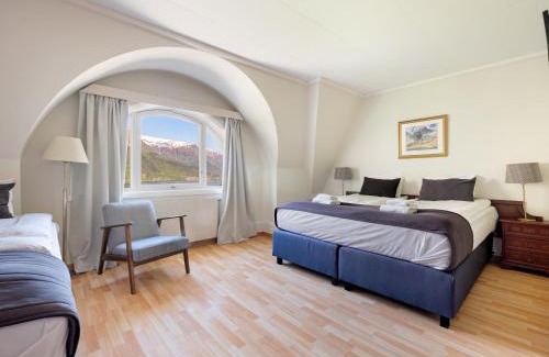 Tyssedal Hotel is by the Hardangerfjorden at the foot of the Hardangervidda Mountains, 3.7 mi north of central Odda. It offers free WiFi, private parking and free sauna access. The guest rooms feature a TV and fjord or mountain views. The hotel is also home to a collection of original art paintings by Norwegian painters. Fishing, hiking and skiing are popular in the surrounding area. The Trolltunga hike starts in Skjeggeda which is 20 minutes' drive from Tyssedal Hotel. The Norwegian Museum of Hydro Power and Industry is 1312 feet away.