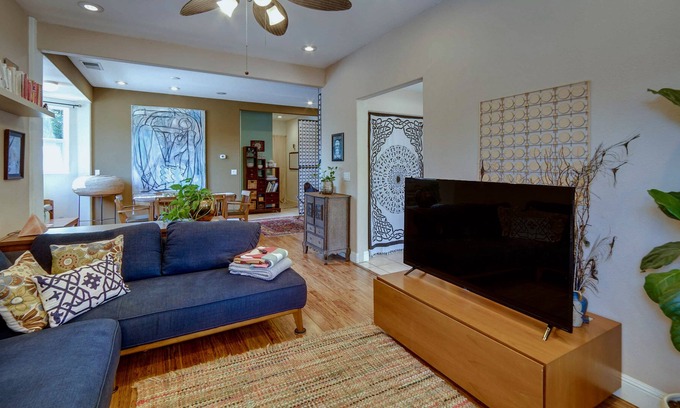 Nestled in a serene neighborhood in the picturesque town of Ukiah, this 2-bedroom, 1-bathroom vacation rental house offers a fully equipped kitchen, a spacious living area, and a tranquil outdoor space. With Lake Mendocino just a short drive away, outdoor enthusiasts will love exploring its scenic trails and water activities. Don't miss visiting local wineries, like Parducci Wine Cellars, and exploring the stunning Montgomery Woods State Natural Reserve. Your perfect Ukiah getaway awaits!