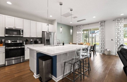 Welcome to Your Dream Vacation Getaway! Step into this spacious 8 bedroom, 5 bathroom vacation home, thoughtfully designed to bring comfort, style, and a touch of magic to your stay. Perfect for families and groups, this home features 8 cozy bedrooms and plenty of space to relax, play, and create lasting memories. HOUSE RULES: - The most important rule....enjoy yourselves! :) - Trash must be placed in the carts outside and brought to the curb on the correct day. - DO NOT leave outside doors and windows open (Florida is hot, the a/c will stop working and you'll have insects, or lizards visiting you indoors. - Accidents happen. Inform us immediately about any damage. This way we can ensure the house remains in perfect condition for all our guests. - To ensure maximum cleanliness for all our guests we ask that no shoes, food, or drinks be allowed in bedrooms. - No pets: Although we love pets and animals, unfortunately we cannot accept your pet into our home, because we have other guests and owners who are allergic to animals. - No parties or gatherings of groups larger than the confirmed reservation total. Be mindful of the noise level for our neighbors. - No tape, adhesives, or anything sticky allowed on walls, furniture, stair railings etc. - Remotes controls must be left in the rooms they belong to. Please do not remove or steal any remote controls or electronic devices. Additional fees will apply if anything is missing. - Remove any leftovers from the refrigerator or any other personal belongings before check-out.