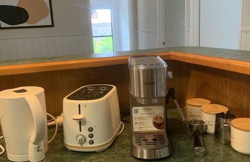 - Kitchen and Laundry: A fully equipped kitchen features brand-new appliances, including an espresso coffee machine perfect for brewing aromatic coffee to invigorate your mornings. A contemporary laundry room adds convenience to your stay.