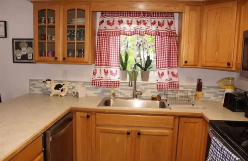 We want to welcome you to the Umbrella J Getaway! This is a fully remodeled 4 bedroom, 2 bathroom home that has been in our family for a long time. It is a tri level home with the kitchen and dining room being on the main floor. Upstairs you will find three bedrooms and a bathroom. Downstairs is the fourth bedroom, living room, laundry, and second bathroom. This house has a different theme to every room, making it very unique! We have RV parking on the side of the house but no hookups at this time, you are welcome to use it. There is a large privately fenced in backyard with a deck and patio table. We added a swingset, use it at your own risk and please supervise children. We also have a grill out there so utilize it for some amazing BBQ's with your family! There is a dog run on the side out back for your pets as well. We do charge a $40 non-refundable pet fee that must be paid before check in. We have a fully stocked kitchen with every utensil you could possibly think of including a crockpot, popcorn maker, hand mixer, coffee pot, and so much more. There is a fully stocked coffee bar with coffee, tea, hot cocoa, and even creamer. To make your stay even more enjoyable, we put games and puzzles on the shelves downstairs! Enjoy a fun family game night. We pride ourselves in making this place feel as welcoming as possible. We want it to be your home away from home! Enjoy your stay at the Umbrella J!!!