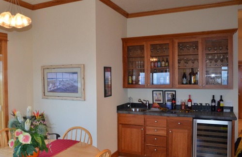 A gourmet kitchen equipped with a sub zero refrigerator and Wolf stove flows into the dining area and living room. The living room also boasts a flat screen TV with cable. The living room and dining area sports an unequalled view of the ocean from the tip of the Washington Peninsula to Tillamook Head. A small deck will allow you to view the amazing sunsets while enjoying a glass of wine and a fresh crab cocktail.