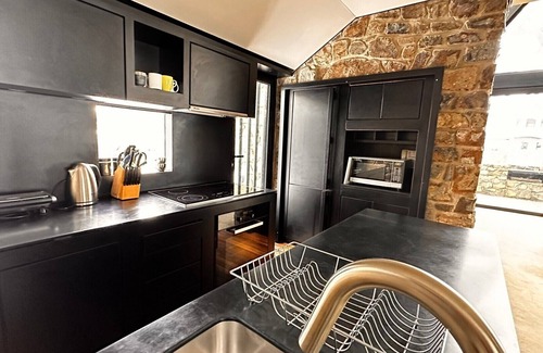 Under the Moonlight is a charming 2-bedroom chalet in Dinner Plain, featuring a luxurious design with local stone elements. It offers a cozy ambiance with a fireplace, modern kitchen, and a spacious living area. The master bedroom includes a queen-sized bed and an ensuite with a spa, while the second bedroom has two single beds. The property is ideal for a romantic getaway or small family retreat. It includes full kitchen facilities, smart TV, and ample parking.