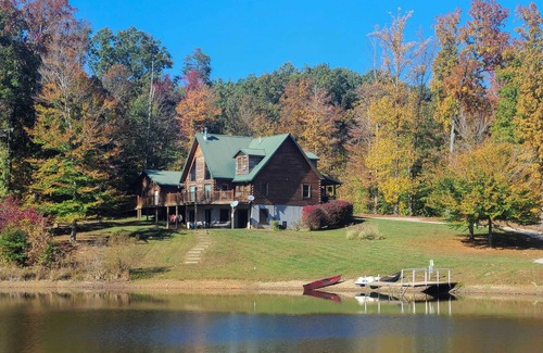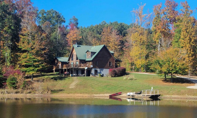 Looking to escape the hustle and bustle of the city? Get lost in the Hoosier State at 'Heavenly Hills Lodge,' a spacious 6-bedroom, 7.5-bathroom vacation rental cabin for 14. Sitting proudly on 40 acres, this cabin boasts a private lake, pool table and more, making it the perfect place for family reunions or getaways with friends. Whether you choose to spend your time enjoying the views of the rolling hills or indulging in the lake, you'll surely have an unforgettable stay.
