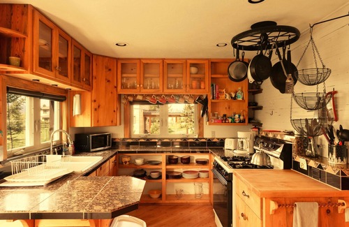 There are abundant South facing windows meaning good views and sunny warmth any time of year. Everything is included: washer and dryer and large TV, full kitchen, etc.