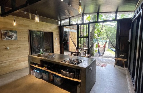 Located on a dead end street, close to bars, restaurants and town. 5 minute drive to the closest beach. Hour and a half by car to Liberia International Airport.